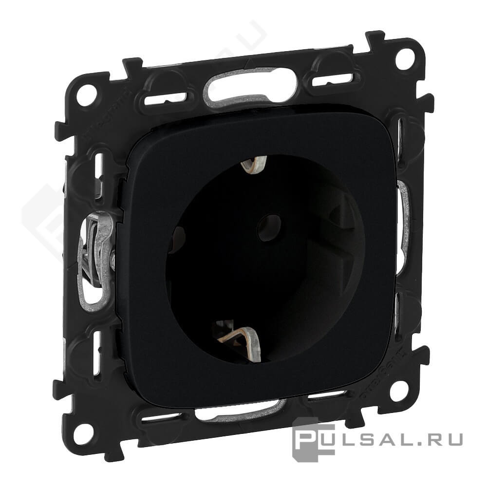 Розетка Valena Allure, без шторок, с заземлением, одинарная, винтовые клеммы, цвет - матовый черный