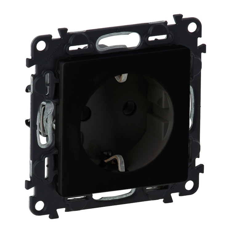 Розетка Valena Life, со шторками, с заземлением, одинарная, безвинтовые клеммы, цвет - матовый черный