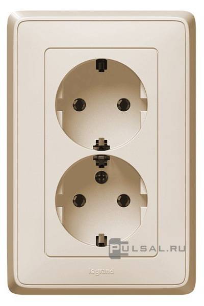 Розетка Cariva, без шторок, с заземлением, двойная, винтовые клеммы, цвет - слоновая кость