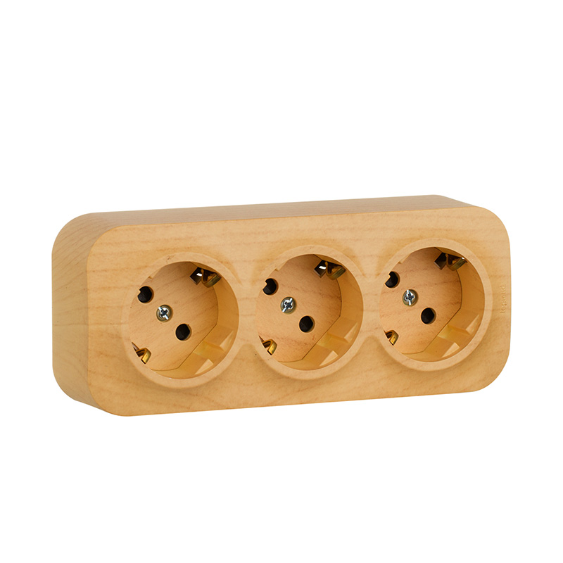 Розетка 45° Quteo, со шторками, с заземлением, тройная, винтовые клеммы, цвет - дерево