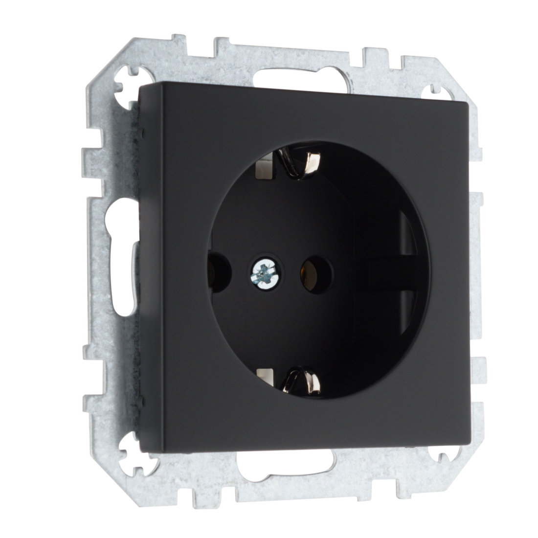 Розетка Epsilon, Retro Liregus, без шторок, с заземлением, одинарная, безвинтовые клеммы, цвет - черный матовый