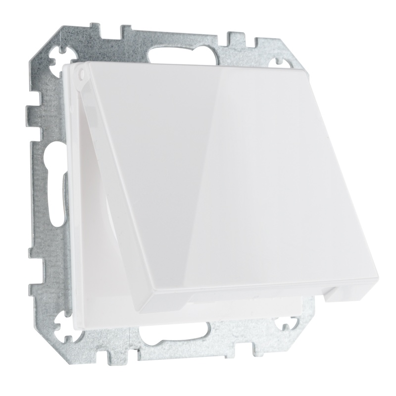 Розетка Epsilon, Retro Liregus, со шторками, с крышкой, с заземлением, одинарная, безвинтовые клеммы, цвет - белый