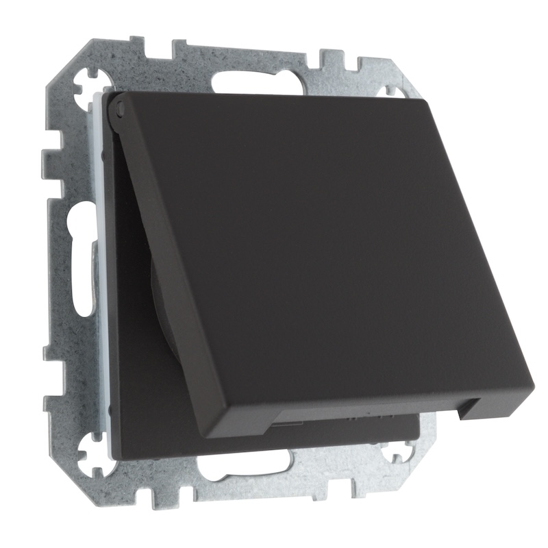 Выключатель Epsilon, Retro Liregus, одноклавишный, без подсветки, с возможностью подсветки, цвет - черно-коричневый матовый