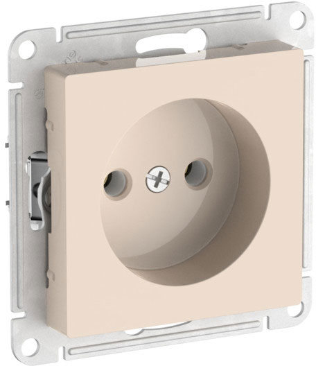 Розетка с выталкиванием вилки Atlas Design Antique, AtlasDesign Air, Atlas Design, со шторками, с заземлением, одинарная, винтовые клеммы, цвет - бежевый