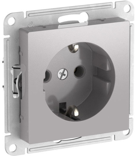 Розетка (безвинтовые клеммы) Atlas Design Antique, AtlasDesign Air, Atlas Design, без шторок, с заземлением, одинарная, безвинтовые клеммы, цвет - алюминий