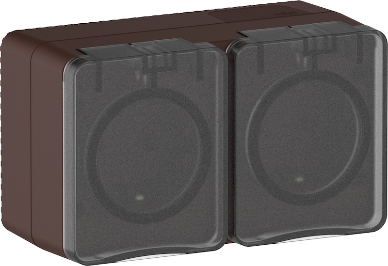 Розетка Atlas Design Profi 54, со шторками, с крышкой, с заземлением, одинарная, винтовые клеммы, цвет - коричневый