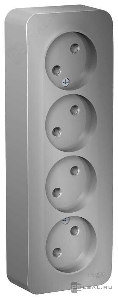 Розетка с изолирующей пластиной Blanca, без шторок, без заземления, четверная, цвет - алюминий