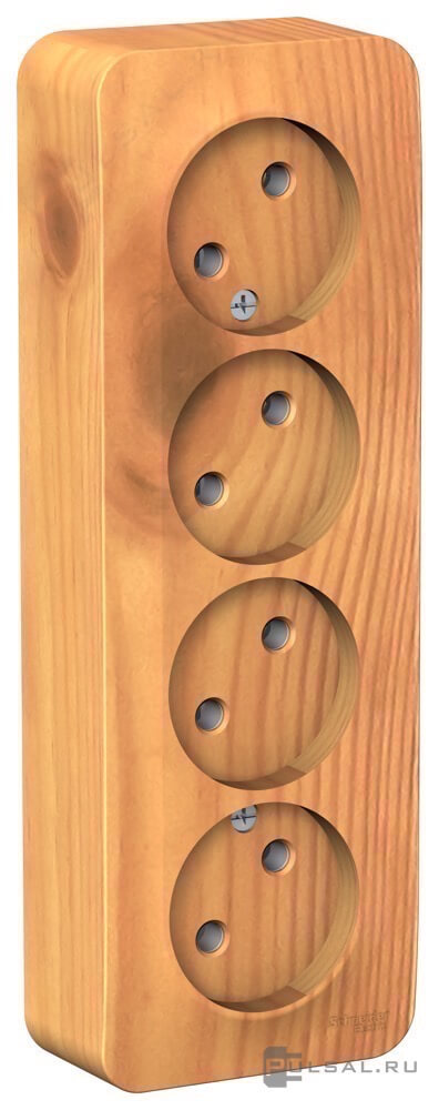 Розетка с изолирующей пластиной Blanca, со шторками, с заземлением, четверная, цвет - ясень