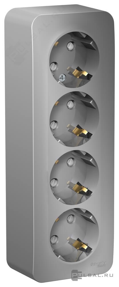 Розетка с изолирующей пластиной Blanca, со шторками, с заземлением, четверная, цвет - алюминий