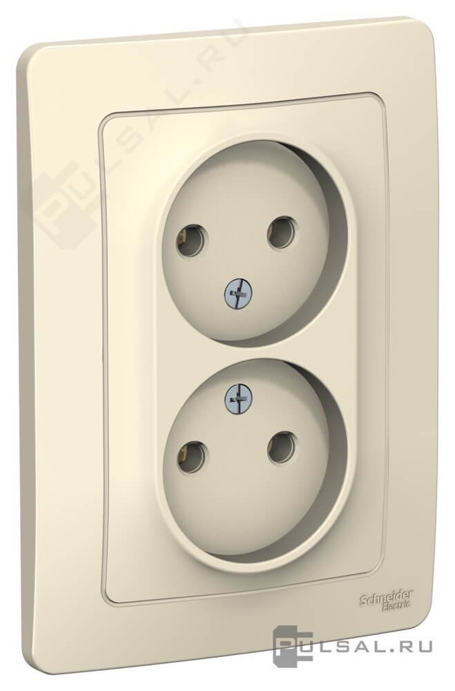 Розетка с рамкой Blanca, без шторок, без заземления, двойная, цвет - молочный