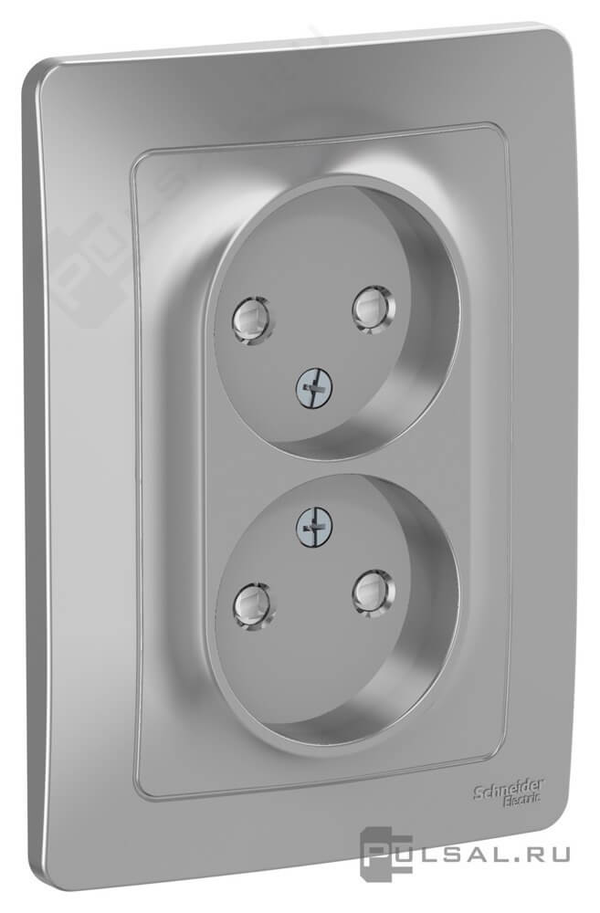 Розетка с рамкой Blanca, со шторками, без заземления, двойная, цвет - алюминий