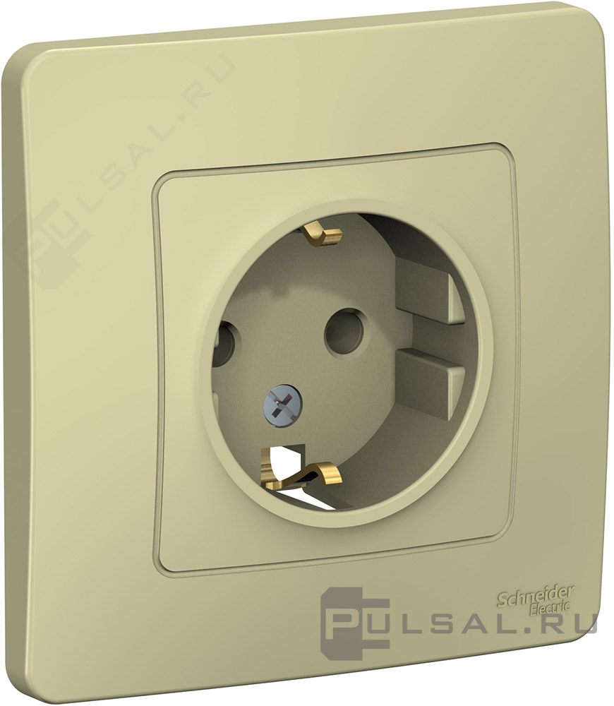 Розетка с рамкой Blanca, без шторок, с заземлением, одинарная, цвет - бежевый