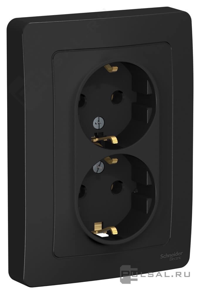 Розетка с рамкой Blanca, без шторок, с заземлением, двойная, цвет - антрацит
