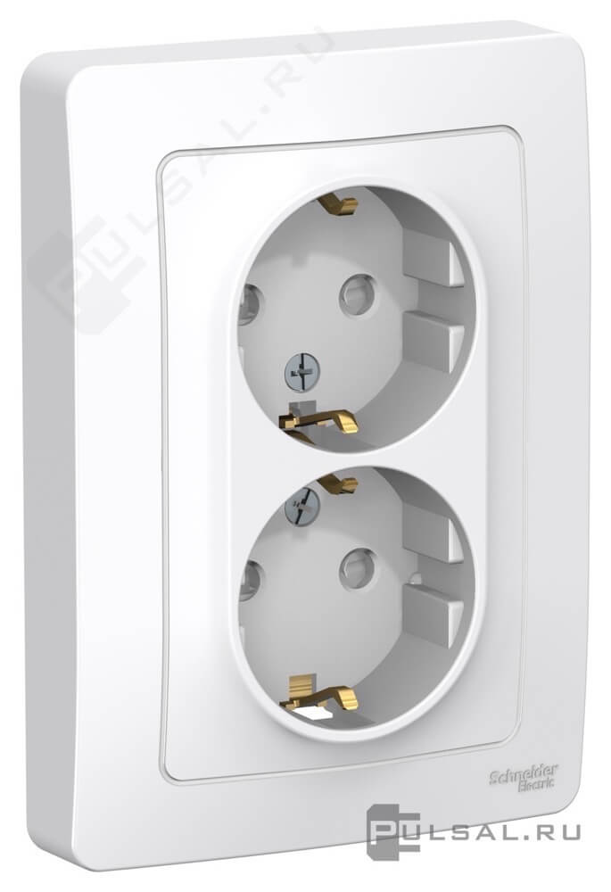 Розетка с рамкой Blanca, со шторками, с заземлением, двойная, цвет - белый