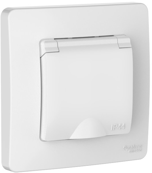 Розетка с рамкой 16A Blanca, со шторками, с крышкой, с заземлением, одинарная, винтовые клеммы, цвет - белый