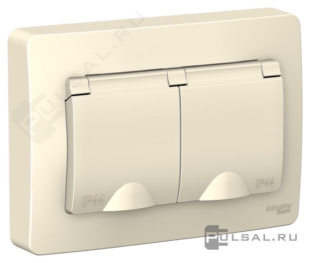 Розетка в одну монтажную коробку Blanca, со шторками, с крышкой, с заземлением, двойная, цвет - молочный