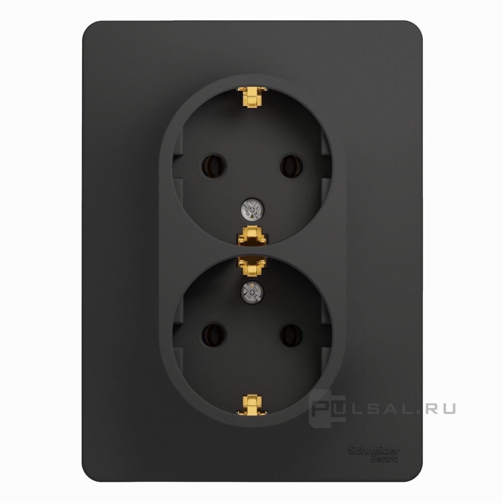 Розетка Glossa, со шторками, с заземлением, двойная, винтовые клеммы, цвет - антрацит
