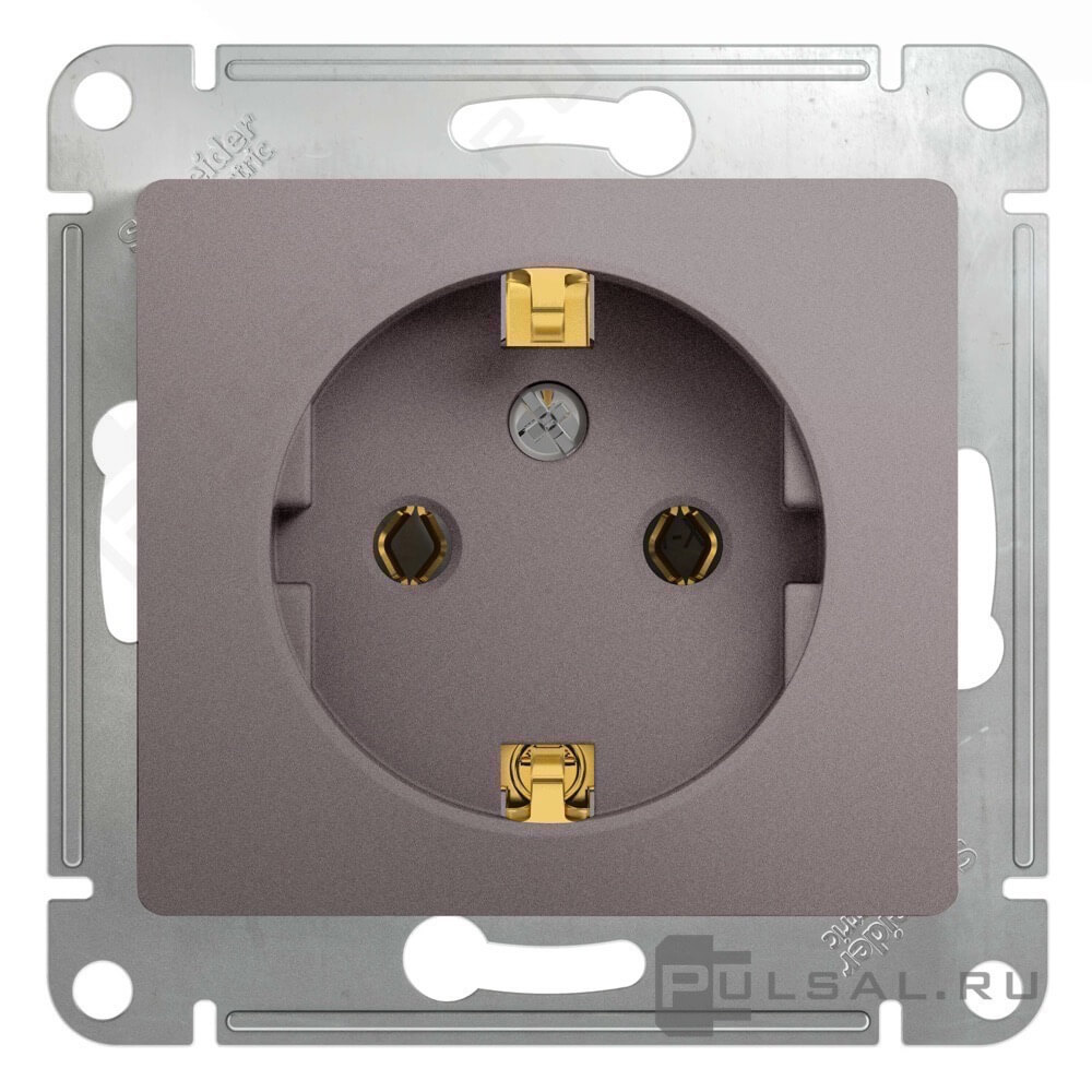 Розетка Glossa, без шторок, с заземлением, одинарная, винтовые клеммы, цвет - платина