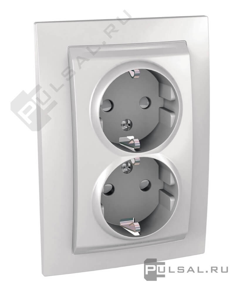 Розетка моноблок Unica Базовая, Unica Хамелеон, Unica Quadro, со шторками, с заземлением, двойная, винтовые клеммы, цвет - белый