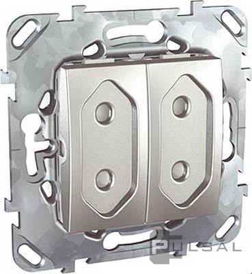 Розетка Unica Quadro, Unica Top, Unica Class, со шторками, без заземления, двойная, винтовые клеммы, цвет - алюминий