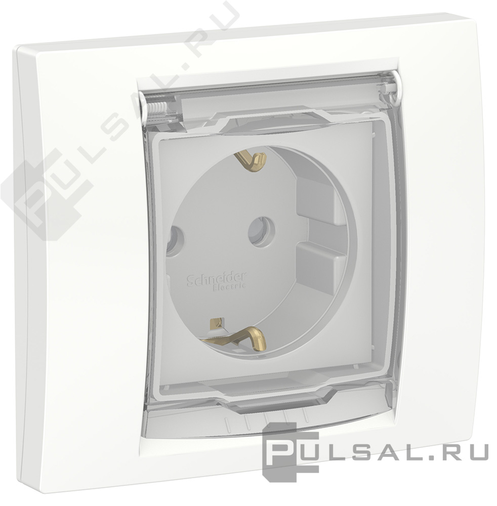 Розетка моноблок Unica New Studio, со шторками, с крышкой, с заземлением, одинарная, винтовые клеммы, цвет - белый