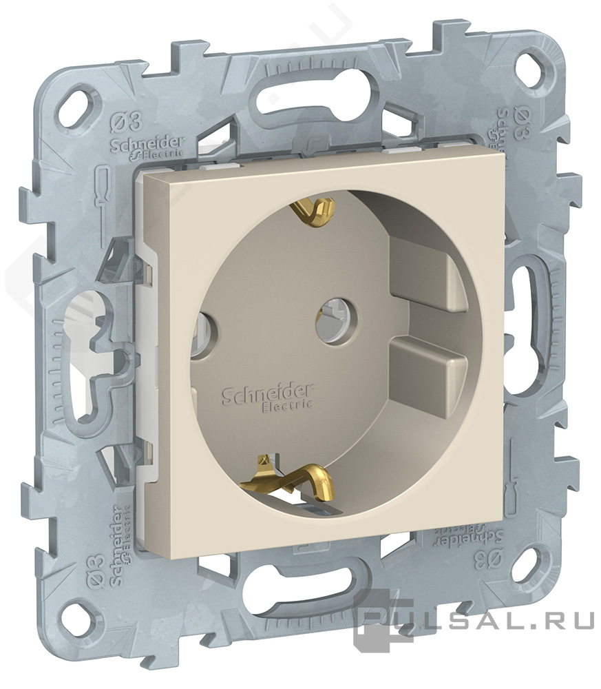 Розетка Unica New Pure, Unica New Studio, без шторок, с заземлением, одинарная, винтовые клеммы, цвет - бежевый