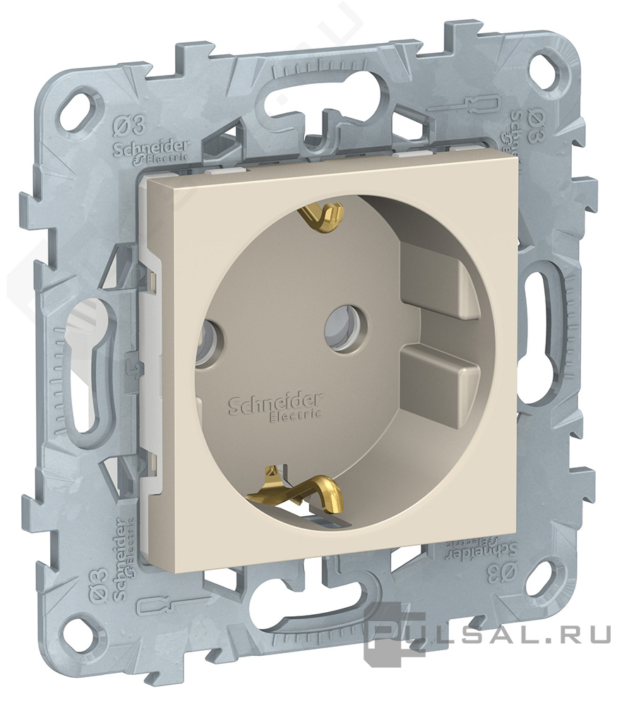 Розетка Unica New Pure, Unica New Studio, со шторками, с заземлением, одинарная, винтовые клеммы, цвет - бежевый