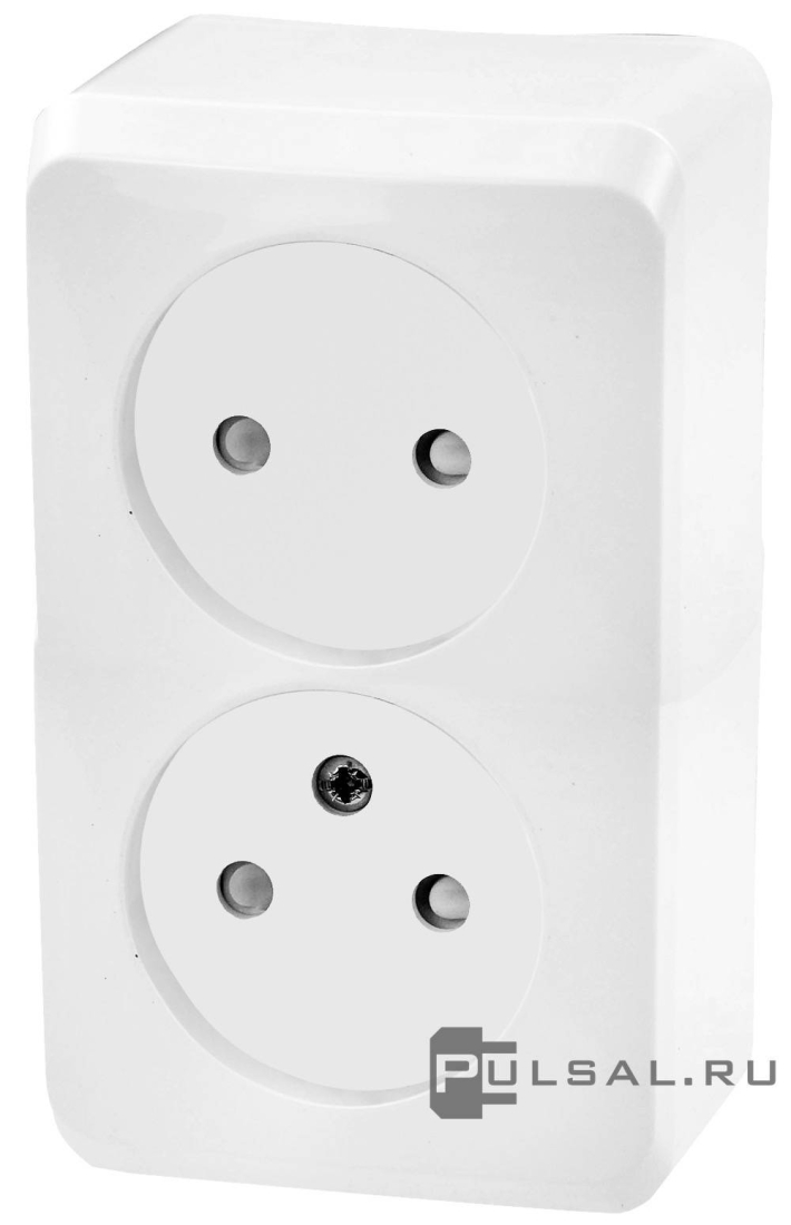Розетка Этюд, без шторок, без заземления, двойная, винтовые клеммы, цвет - белый