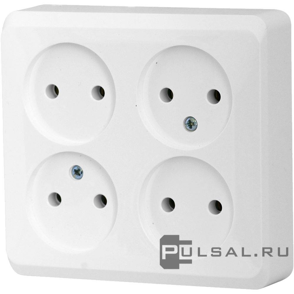Розетка Этюд, без шторок, без заземления, четверная, винтовые клеммы, цвет - белый