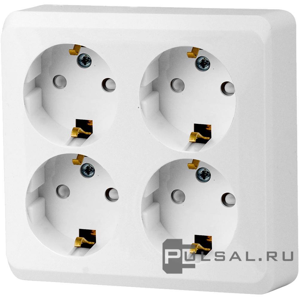 Розетка Этюд, со шторками, с заземлением, четверная, винтовые клеммы, цвет - белый