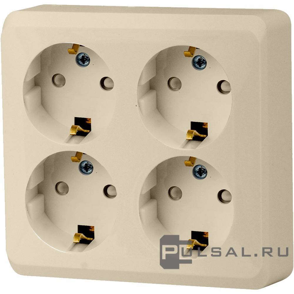 Этюд, без шторок, без заземления, четверная, винтовые клеммы, цвет - кремовый