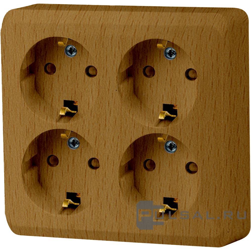 Розетка Этюд, со шторками, с заземлением, четверная, винтовые клеммы, цвет - бук