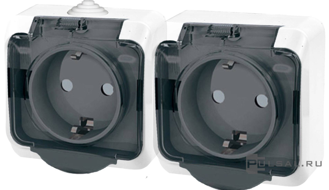 Розетка Этюд, со шторками, с крышкой, с заземлением, двойная, винтовые клеммы, цвет - белый