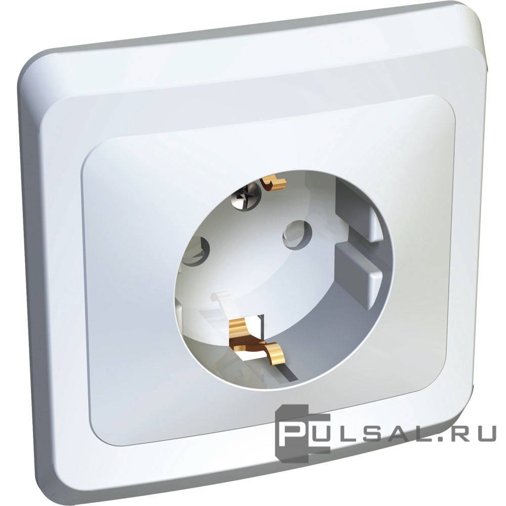 Розетка Этюд, со шторками, с заземлением, одинарная, винтовые клеммы, цвет - белый