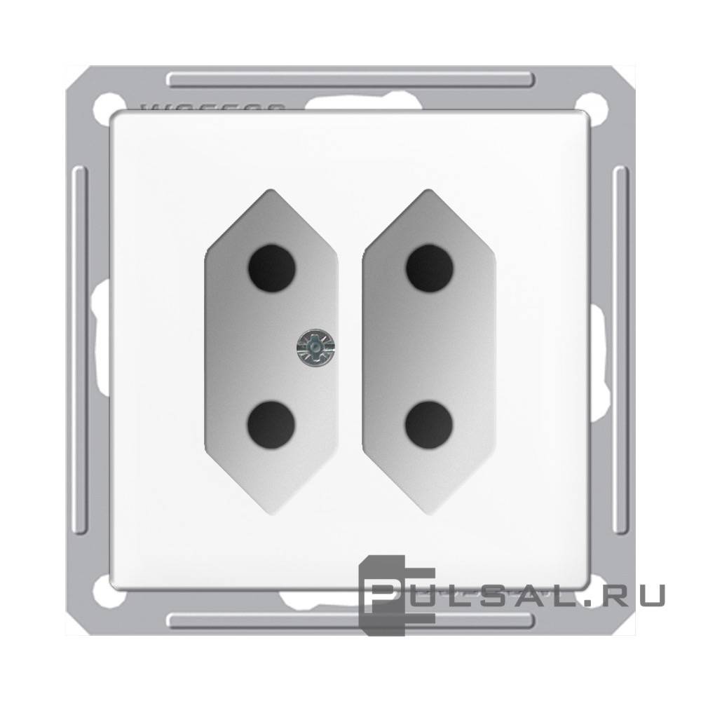Розетка W59, со шторками, без заземления, двойная, винтовые клеммы, цвет - белый