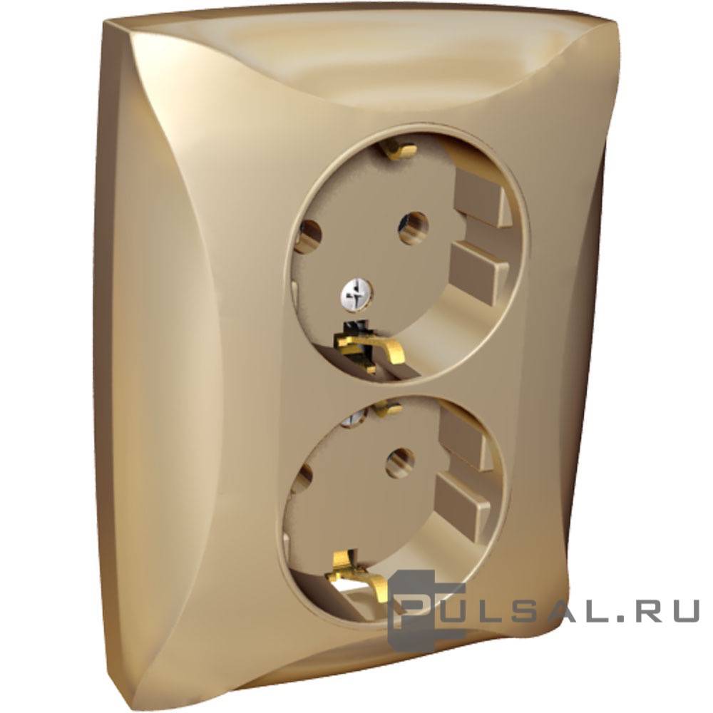 Выключатель Дуэт, трехклавишный, без подсветки, цвет - шампань