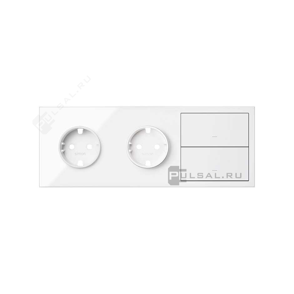 Розетка моноблок Simon 15, без шторок, с заземлением, двойная, винтовые клеммы, цвет - белый глянец