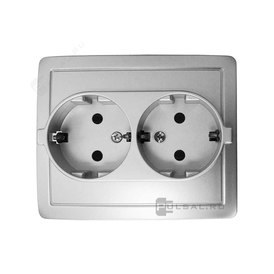 Розетка моноблок Simon 15, без шторок, с заземлением, двойная, винтовые клеммы, цвет - алюминий