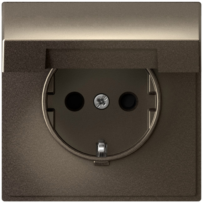Розетка (безвинтовые клеммы) ArtGallery, ArtGallery Pure, со шторками, с крышкой, с заземлением, одинарная, безвинтовые клеммы, цвет - мокко