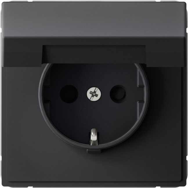 Розетка ArtGallery, ArtGallery Pure, со шторками, с крышкой, с заземлением, одинарная, винтовые клеммы, цвет - карбон