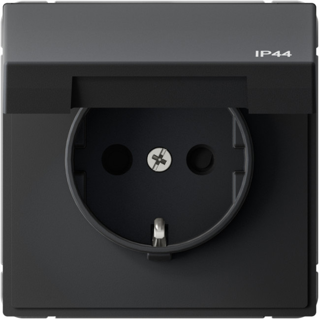 Розетка ArtGallery Aqua ArtGallery, ArtGallery Pure, со шторками, с крышкой, с заземлением, одинарная, винтовые клеммы, цвет - карбон