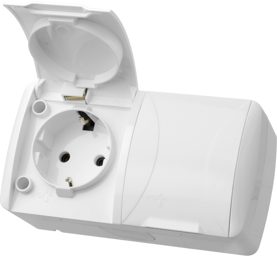 Селигер, с крышкой, с заземлением, двойная, винтовые клеммы, цвет - белый