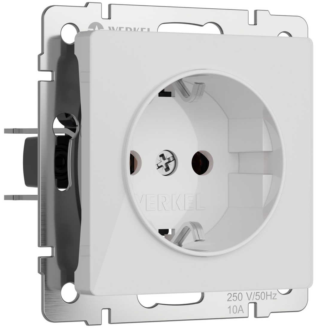Розетка Alumax, Split, Slab, Senso, Baguette, Acrylic, Platinum, Elite, Snabb, Stream, Flock, Stark, Fiore, Favorit, Diamant, Aluminium, Antik, Metallic, со шторками, с заземлением, одинарная, винтовые клеммы, цвет - белый акрил