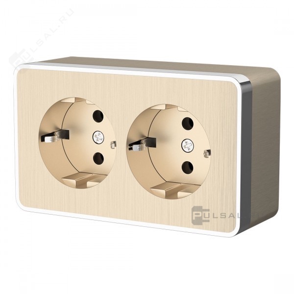 Розетка Gallant, без шторок, с заземлением, двойная, винтовые клеммы, цвет - шампань рифленый