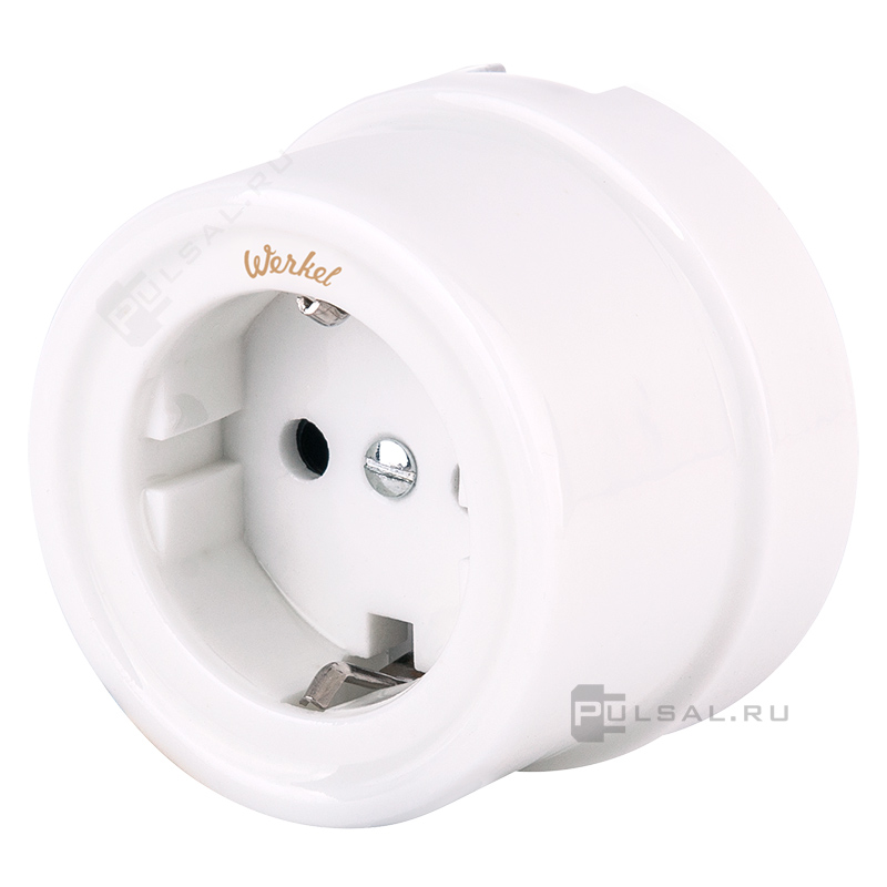 Розетка Retro, без шторок, с заземлением, одинарная, винтовые клеммы, цвет - белый