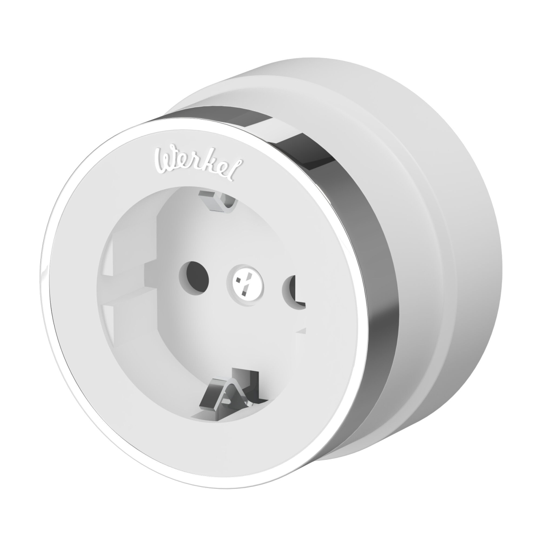 Розетка Vintage, без шторок, с заземлением, одинарная, винтовые клеммы, цвет - белый матовый, хром