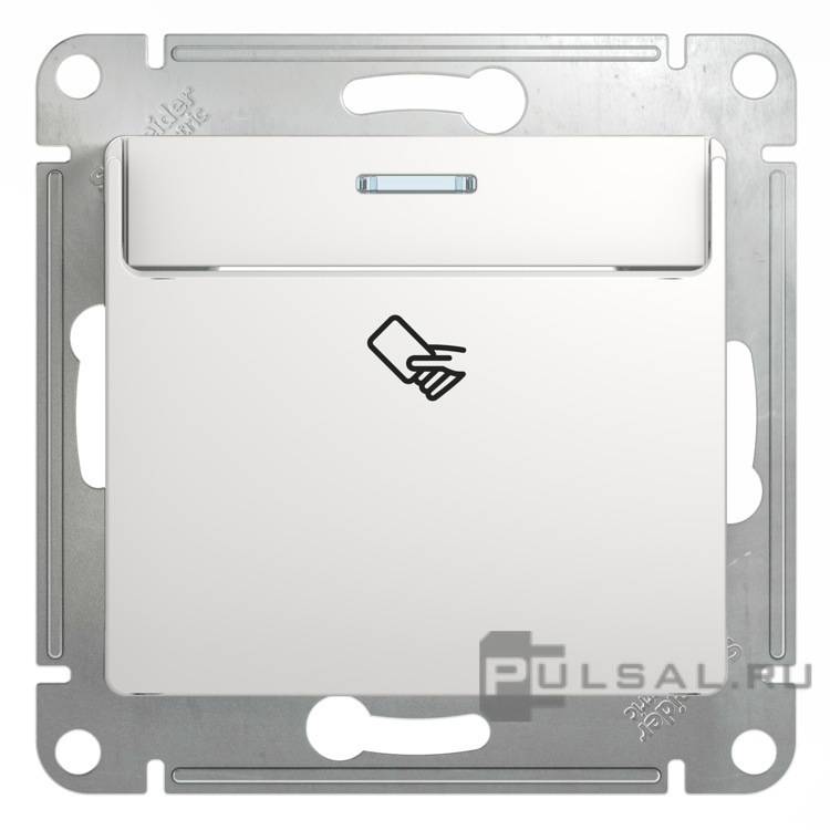 Выключатель карточный Glossa, без подсветки, цвет - белый