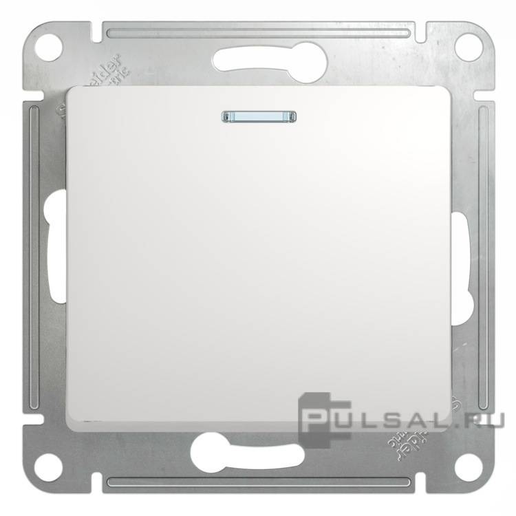 Кнопка Н.О. Glossa, одноклавишный, без подсветки, цвет - белый