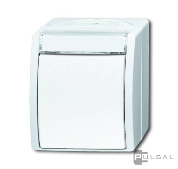Выключатель/переключатель с полем для надписи Ocean (IP 44), одноклавишный, с возможностью подсветки, цвет - серый / сине-зеленый