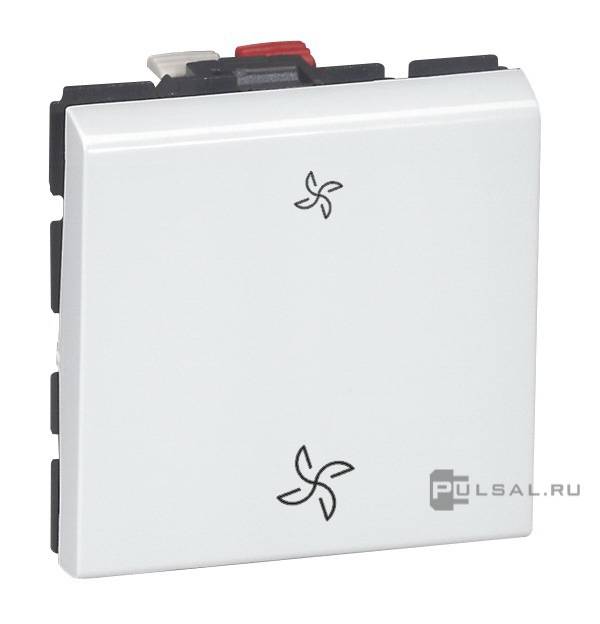 Переключатель для управления вентиляцией на 2 направления Mosaic, одноклавишный, без подсветки, цвет - белый